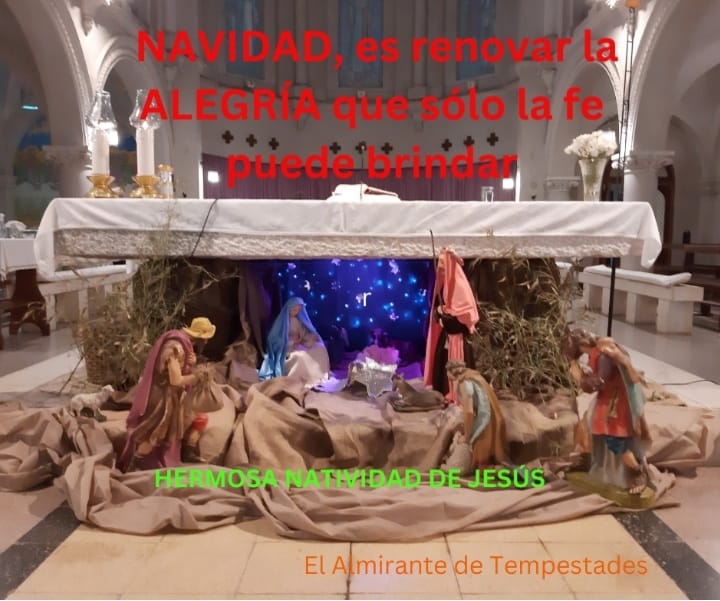 El José y la María como hace más de veinte siglos, siguen deambulando sin encontrar donde dar a luz al Niño, son otras las incomprensiones, pero es un mismo mundo de tinieblas, hoy por una sociedad de consumo que se cree omnipotente y que su mayor logro es la tristeza de muchos, por el no pertenecer. Animémonos a albergarlo en nuestro corazón, y seguro brillará sobre él la misma estrella que resplandecíó en Belén y entonces sí podremos ser constructores de una sociedad en dónde el SER FELIZ sea fácil alcanzar, la de los rostros sonrientes, que sólo la fe puede brindar. Hermosa Nochebuena y una maravillosa Navidad. El Almirante de Tempestades